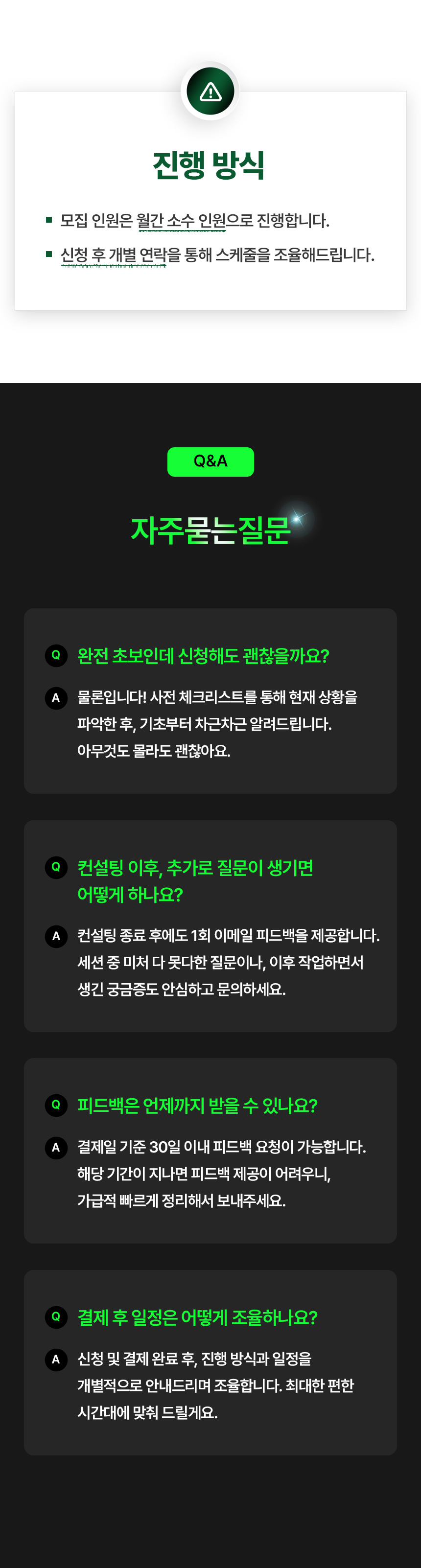 → 컨설팅 종료 후 30일 이내 1회 한정 추가 피드백 제공